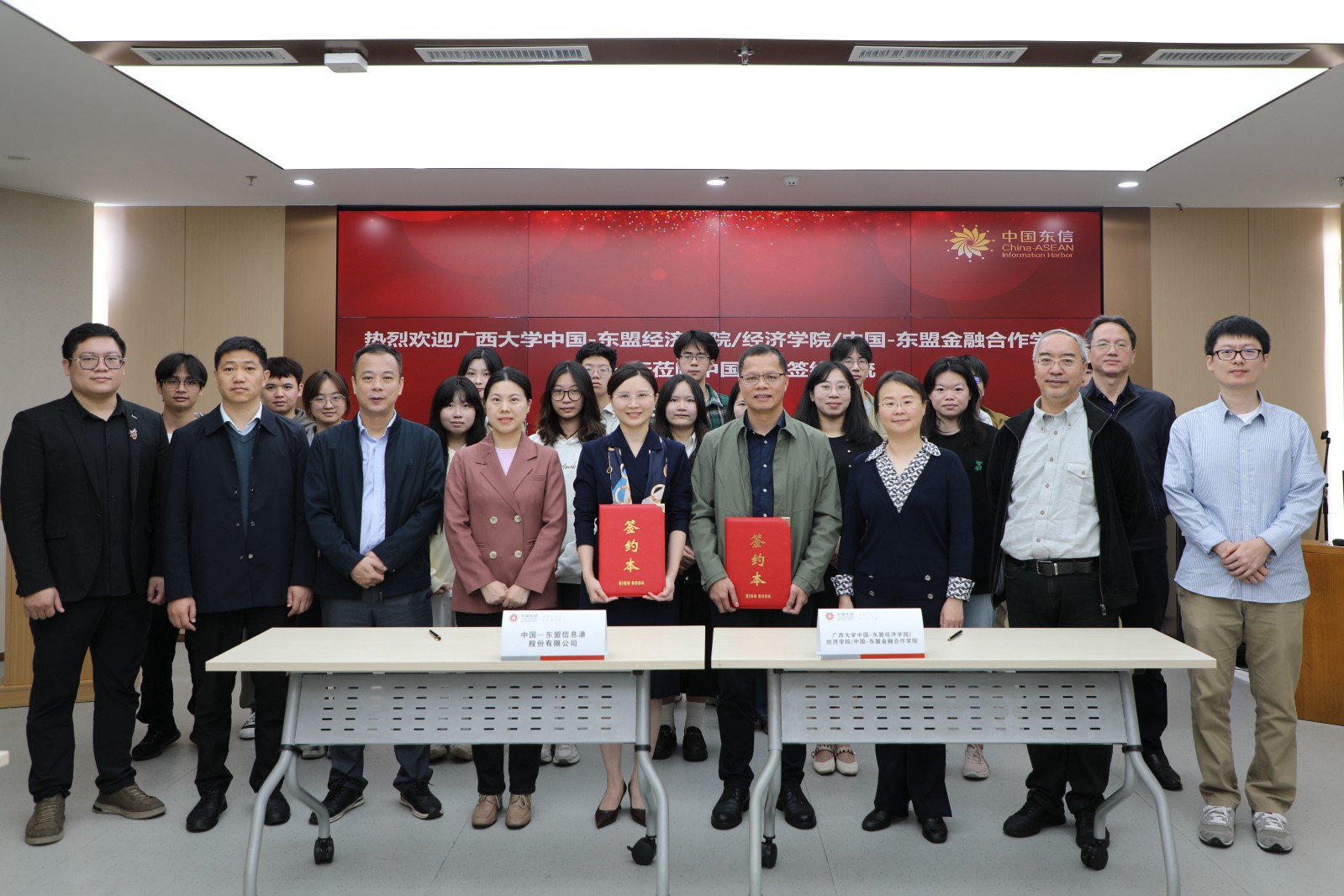 廣西大學(xué)中國-東盟經(jīng)濟學(xué)院/經(jīng)濟學(xué)院/中國-東盟金融合作學(xué)院一行蒞臨中國東信座談簽約